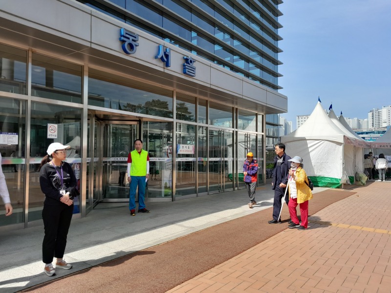 식전행사를 마무리하고 본행사를 시작했습니다 입구에는 여러단체에서 체험 부스를통해 방문한 장애인분들께 도움을 주셨습니다